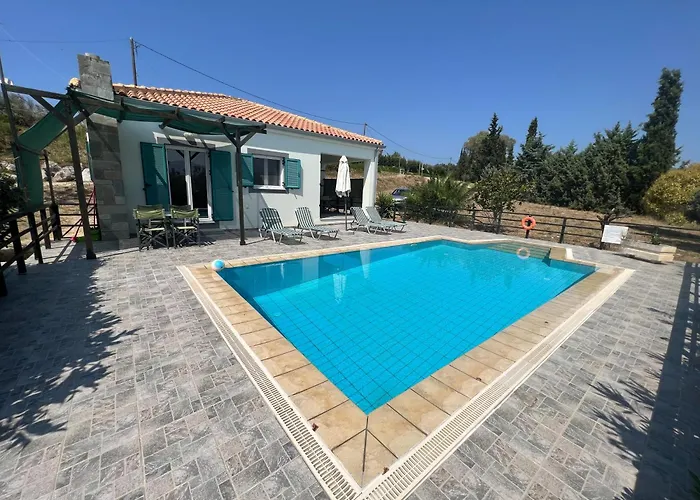 Villa Varkoula med 2 sovrum, som ligger inom 10 minuter med bil från Lepeda-stranden, har en privat pool som garanterar en avkopplande vistelse. Villan med 2 badrum har en parkering och en terrass med utsikt över trädgården.
